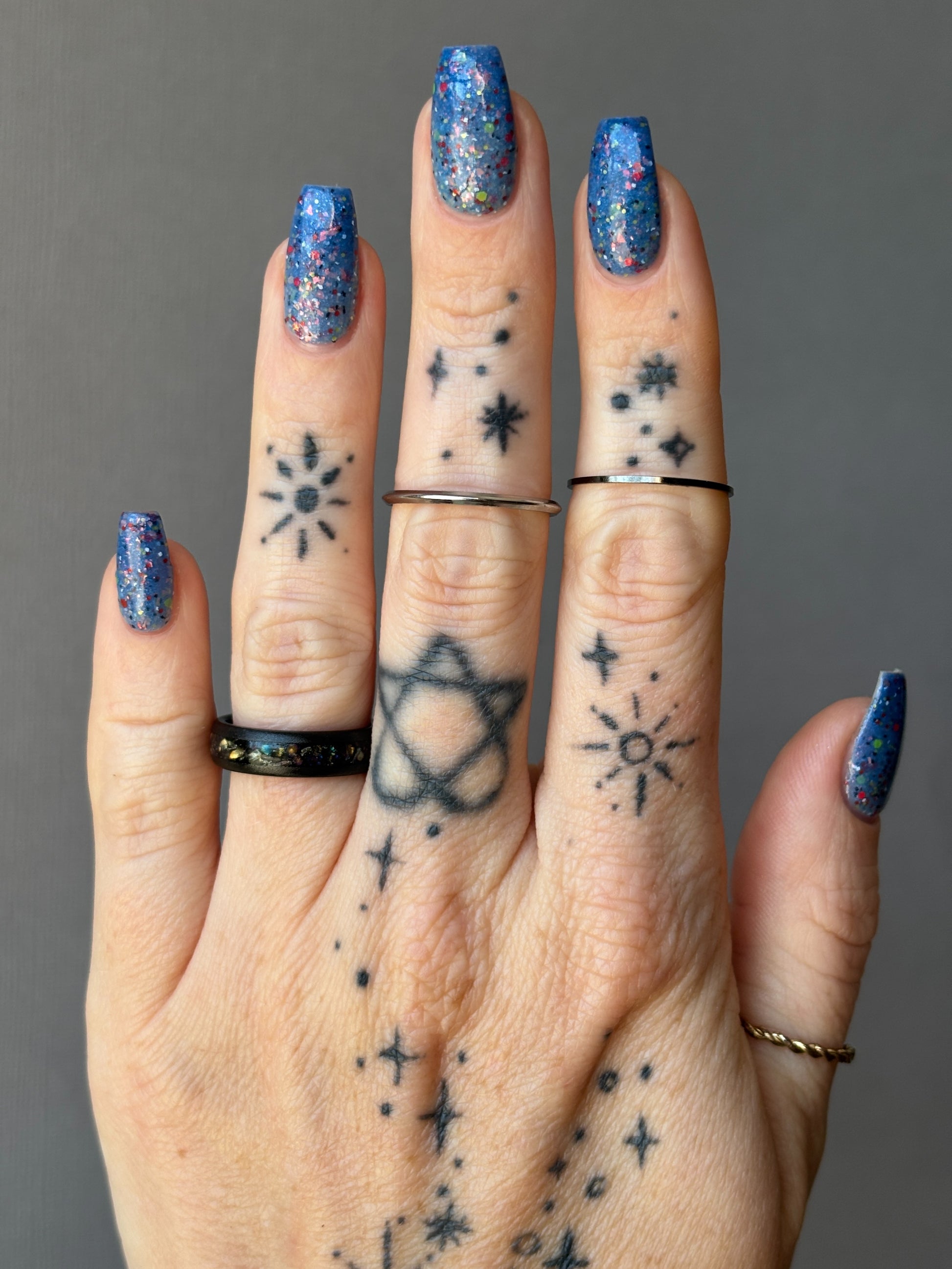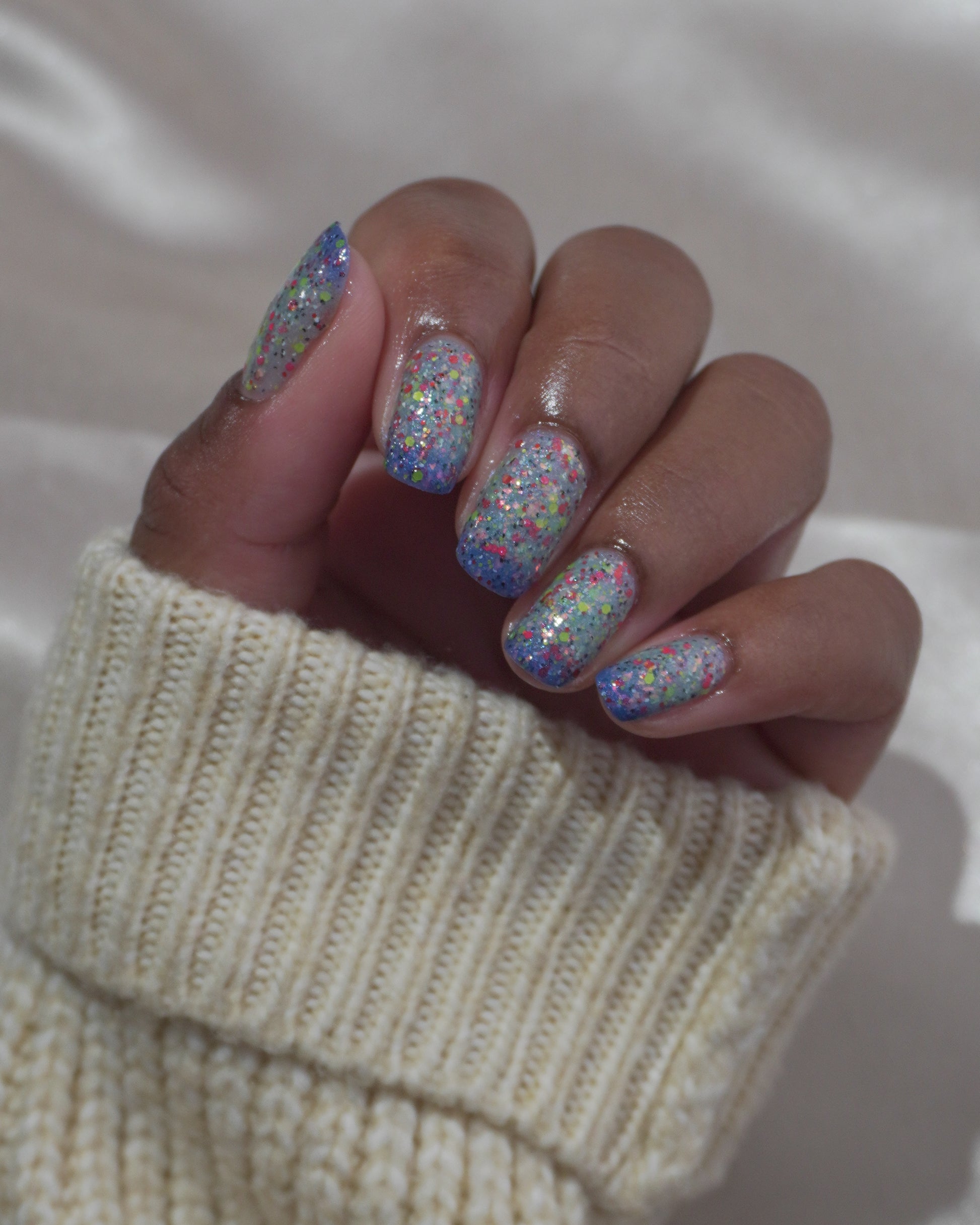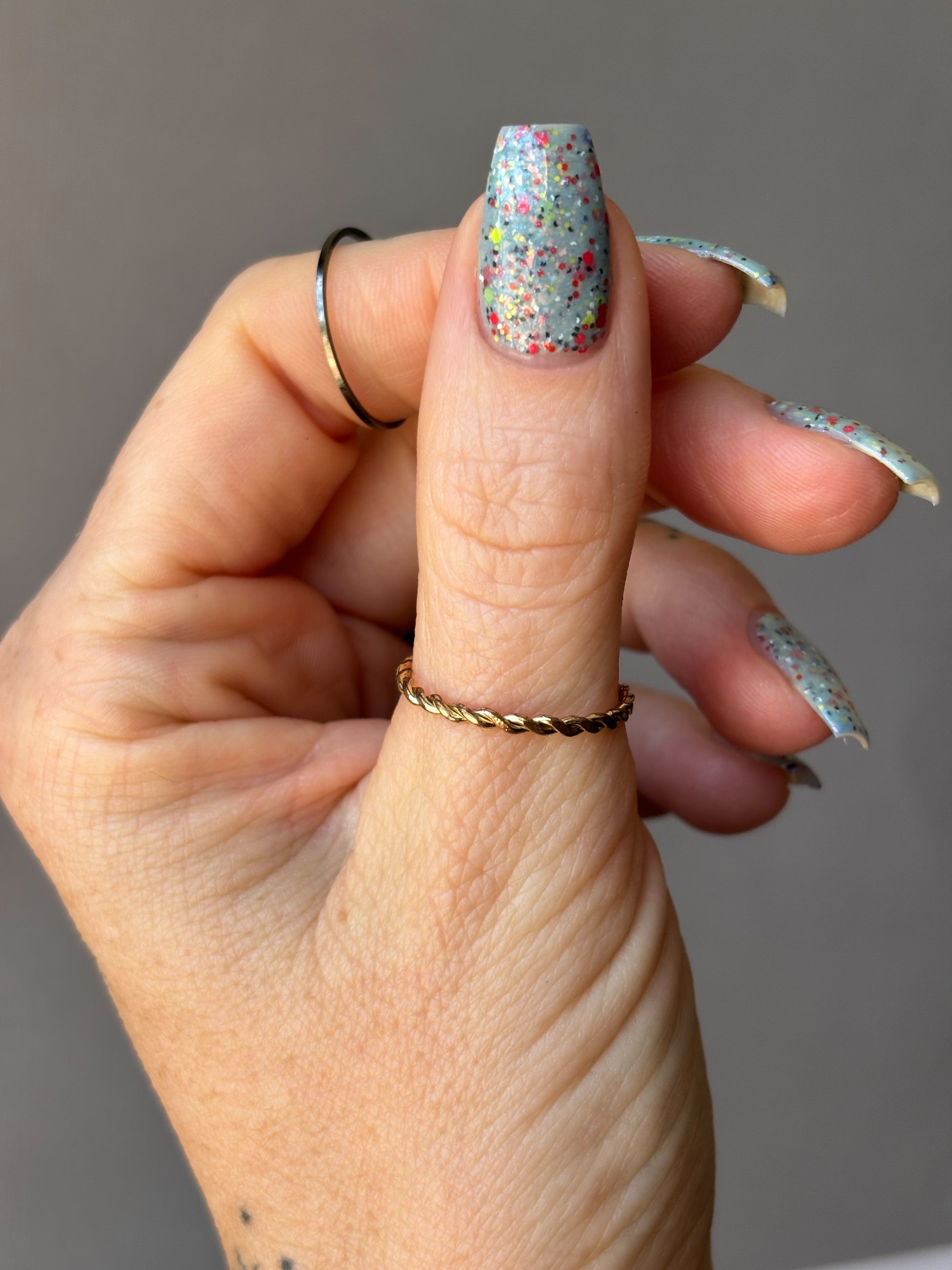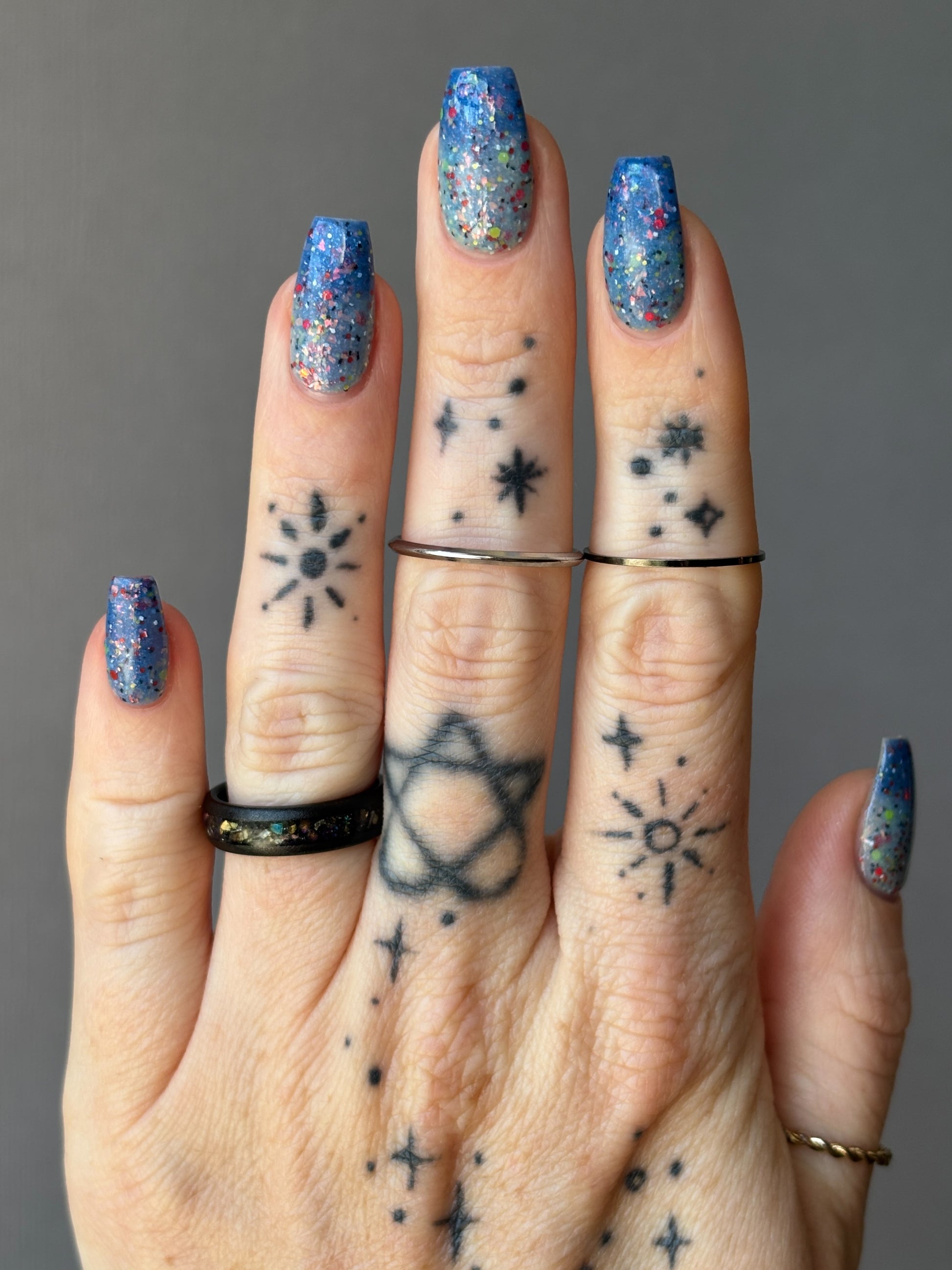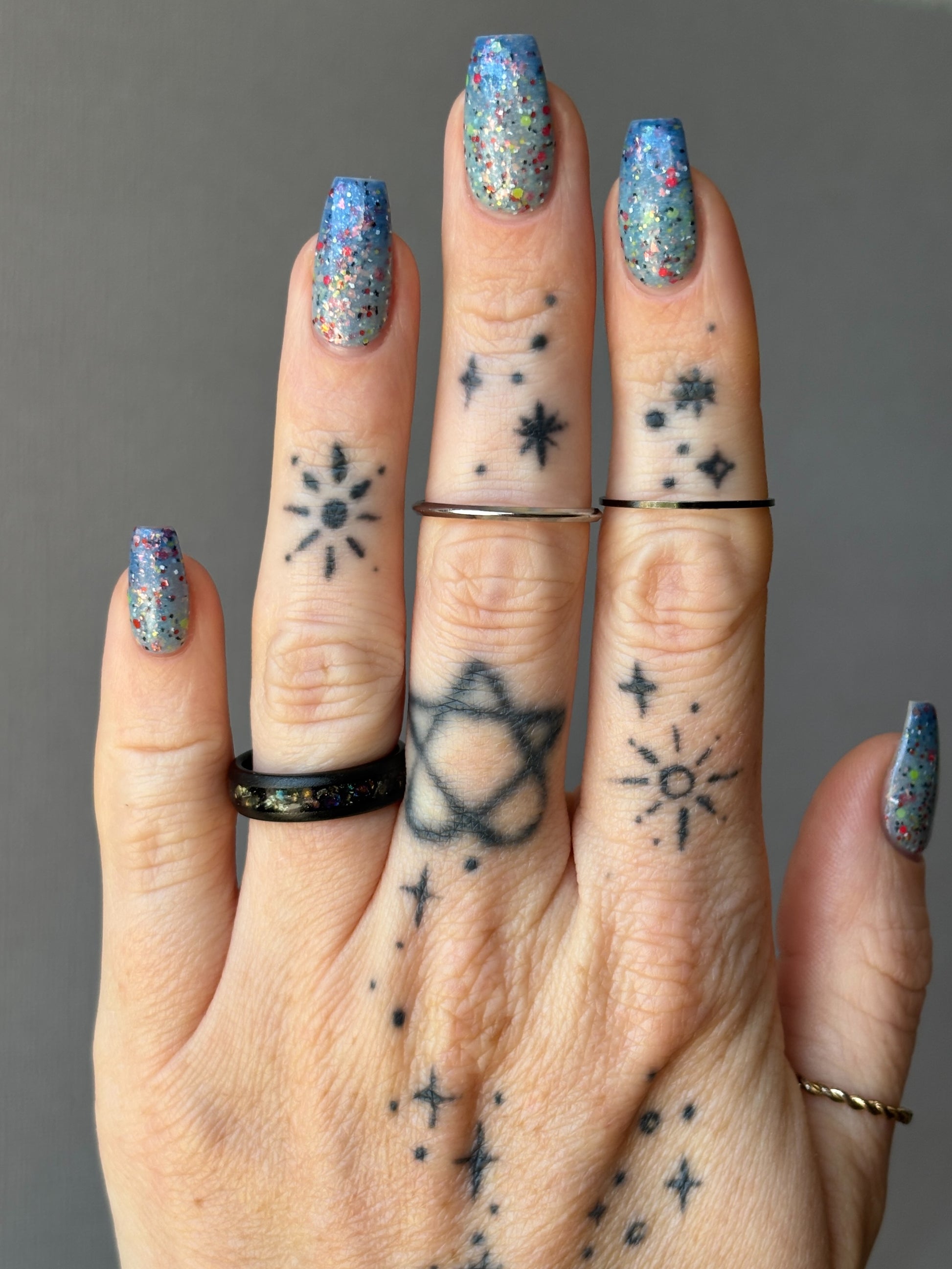Dimwitted Feline is a glow in the dark thermal crelly with orange copper shifty flakes, red, green hex glitters and black micro flakes.