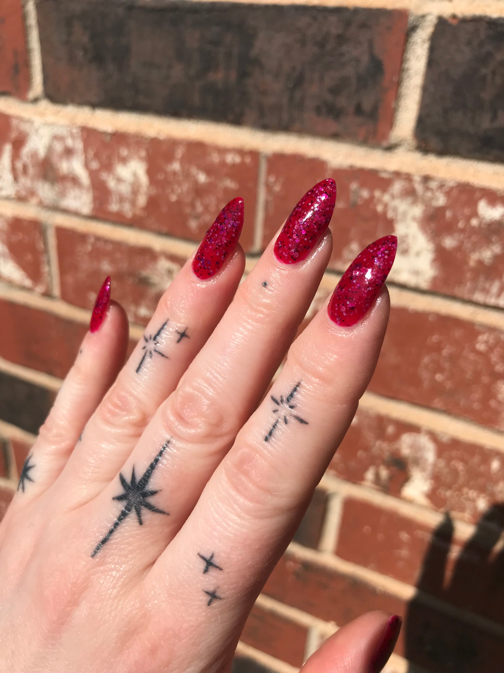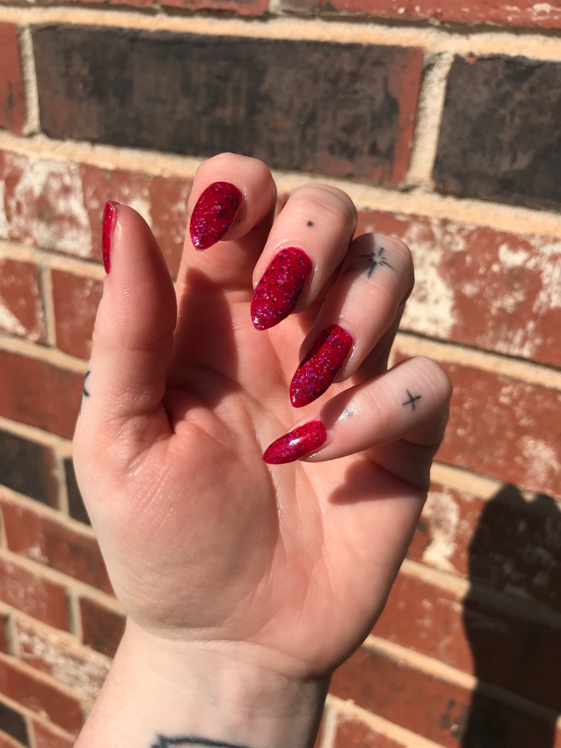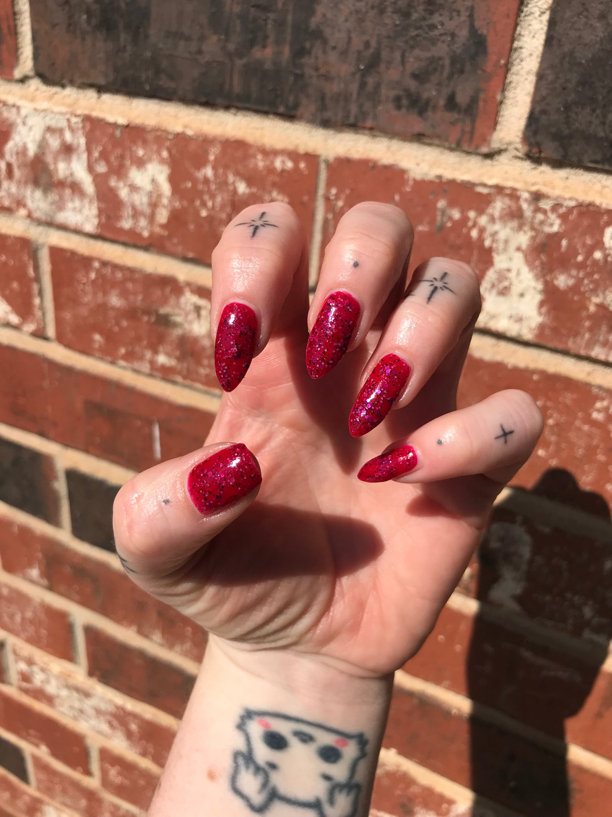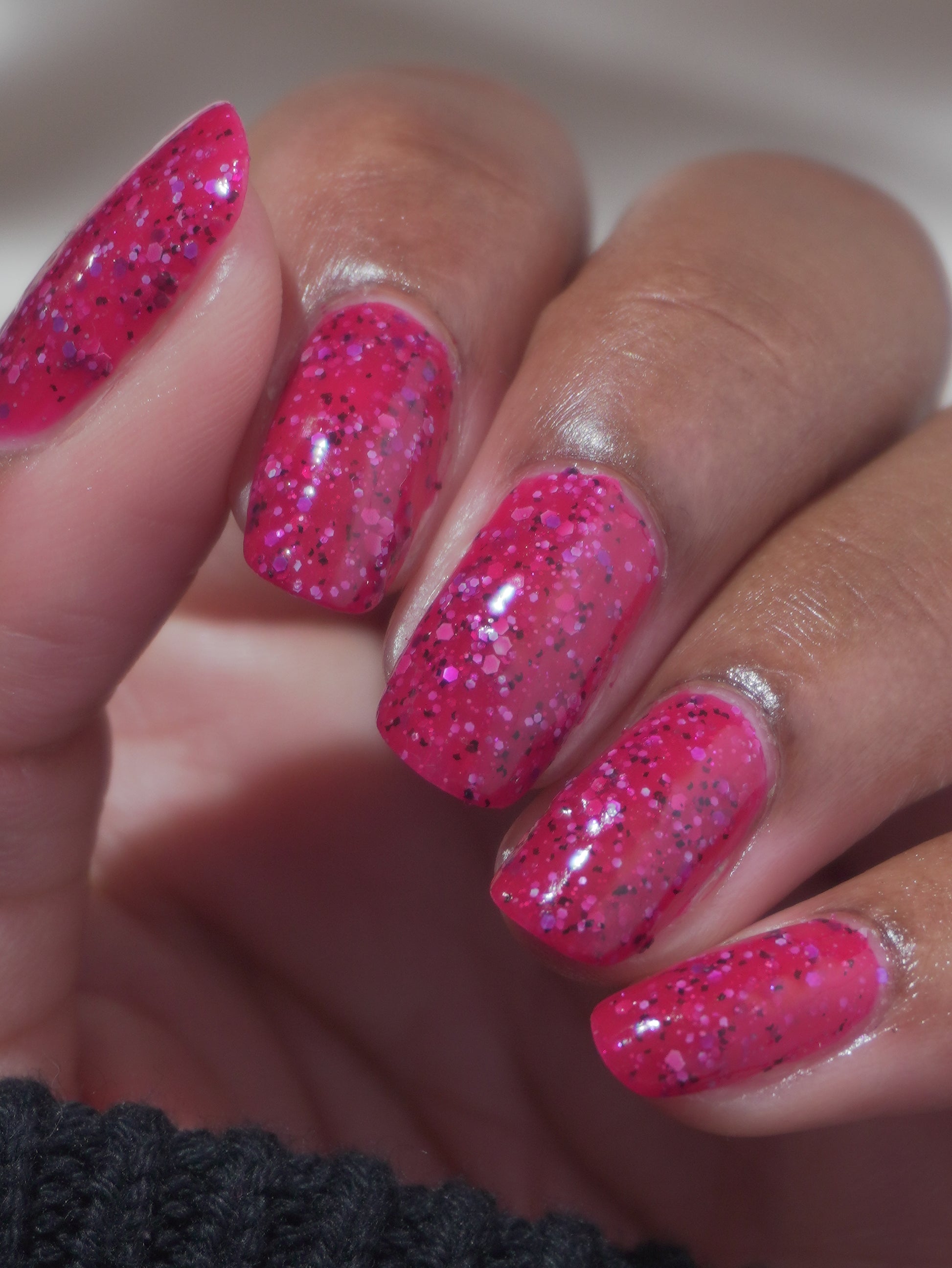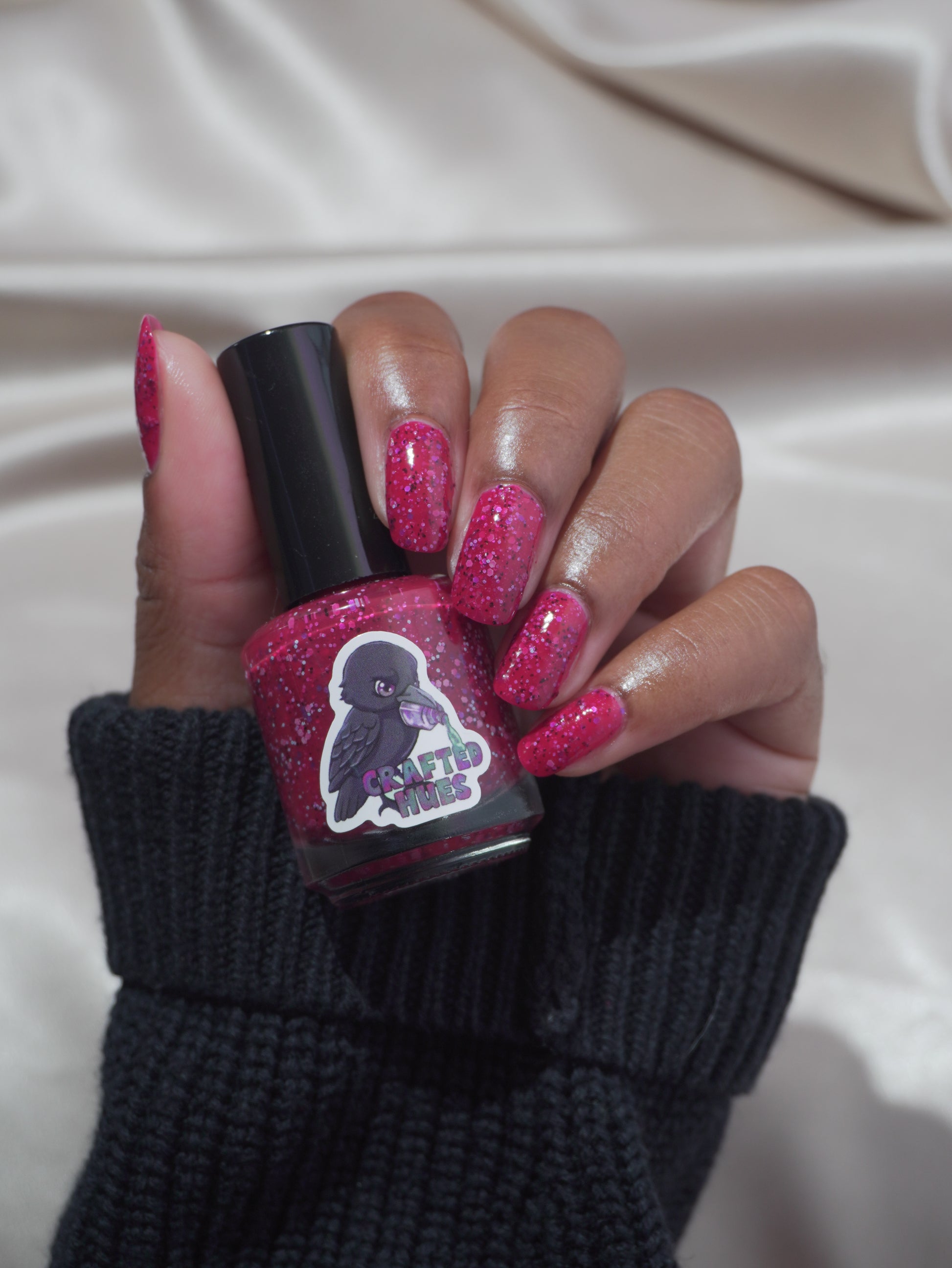Rated R is a red jelly crelly with black micro flakes, blue and purple hex glitters in various sizes!